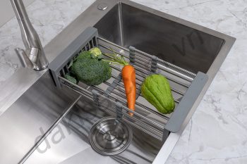 Khi mua bộ chậu rửa chén inox 304 Dakisa, quý khách sẽ được tặng thêm 1 khay rửa trái cây tiện lợi, có thể điều chỉnh kích thước.